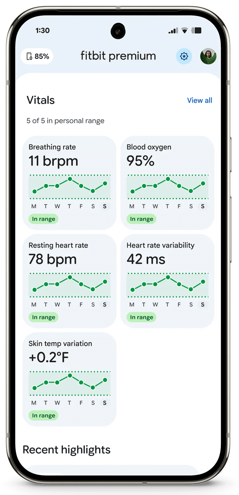 这里的”个人范围”很关键。每个人的基线不同,有的人静息心率天生就是50次/分钟,有的人是70次/分钟,都可能是正常的。Fitbit通过长期追踪建立你的个人基线,当数值异常偏离时会发出提醒。比如你的静息心率通常是58-62,突然连续三天在72以上,这可能是疾病、压力或过度训练的信号。